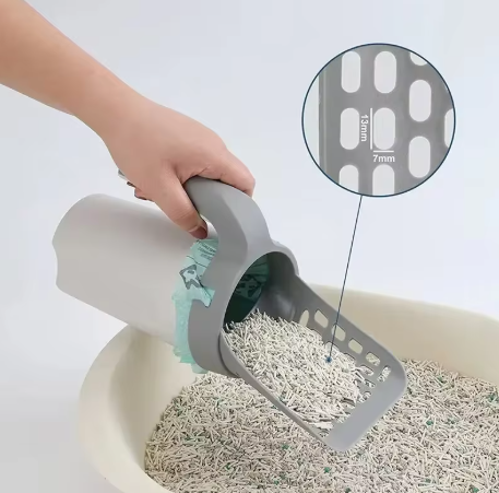 Pelle à litière 2 en 1 avec bac à déchets intégré